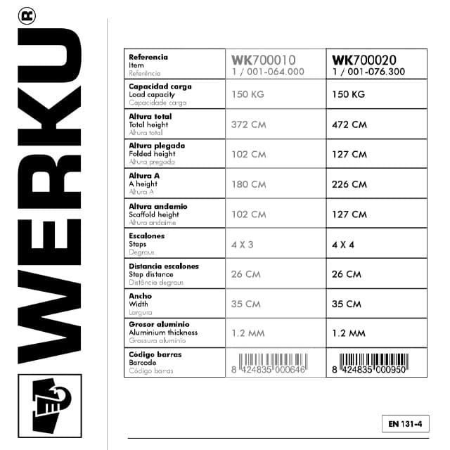 ESCALERA MULTIUSOS WERKU 150KG 4.72M + PLATAFORMA. NORMATIVA EN131-4